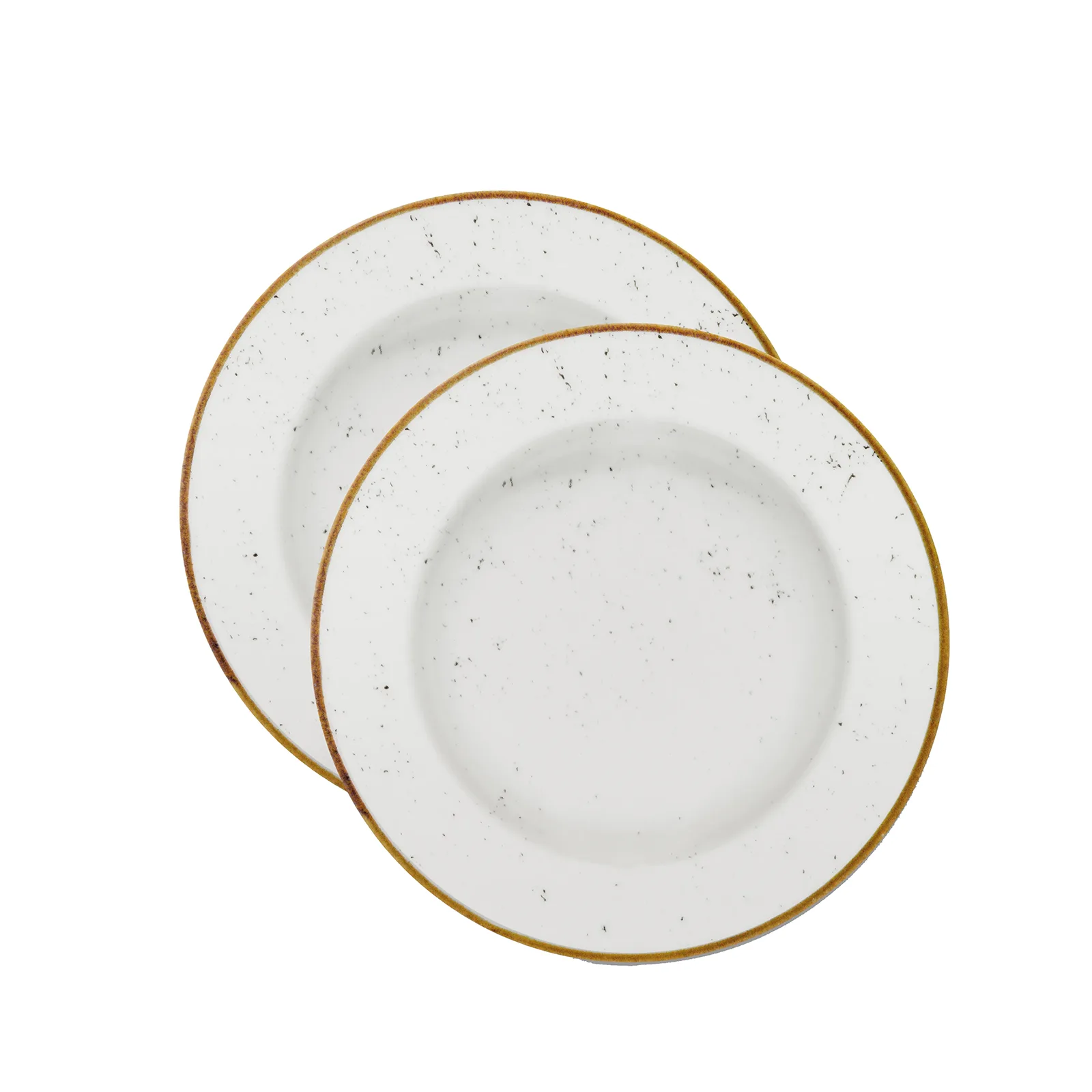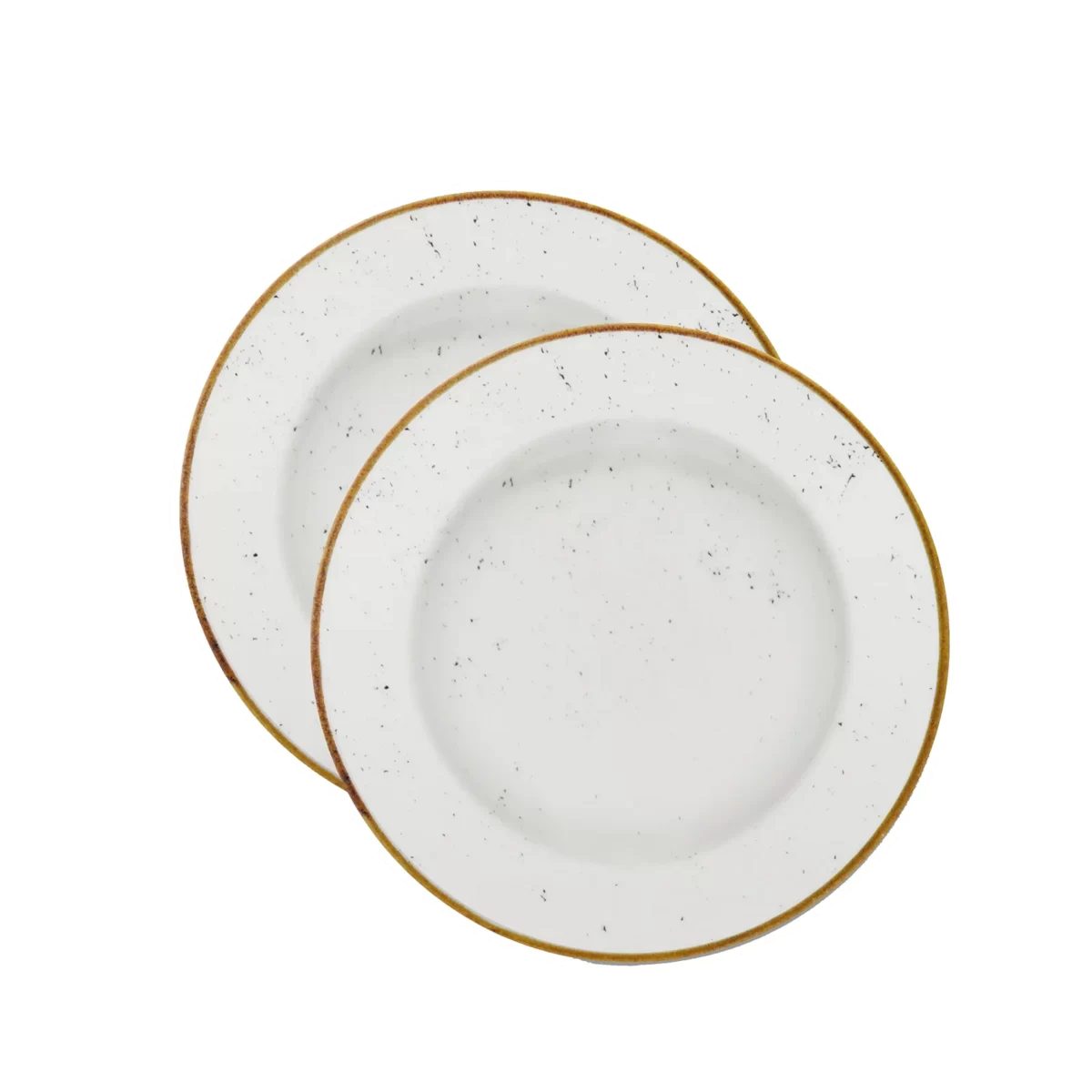 Set 2 piatti fondi in porcellana decorata in sottosmalto. Diametro 23 cm. Lavabili in lavastoviglie. Made in Italy.